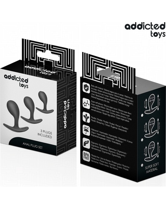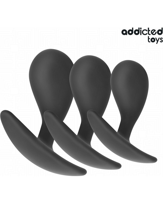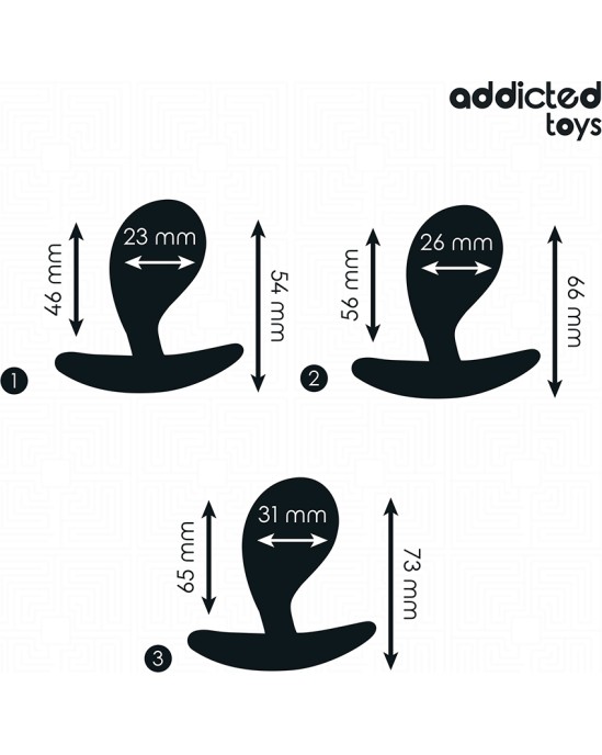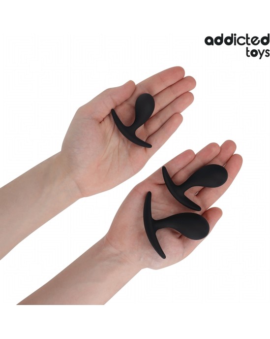 This set includes three anal plugs of different sizes, allowing for gradual adaptation for users of different levels, from beginners to more experienced users. Each plug has a smooth design with a slight curvature, which facilitates smooth and comfortable insertion, while providing additional stimulation thanks to its ergonomic shape. The anchor-shaped base ensures safety and comfort, preventing excessive insertion and allowing easy removal. Key Features: