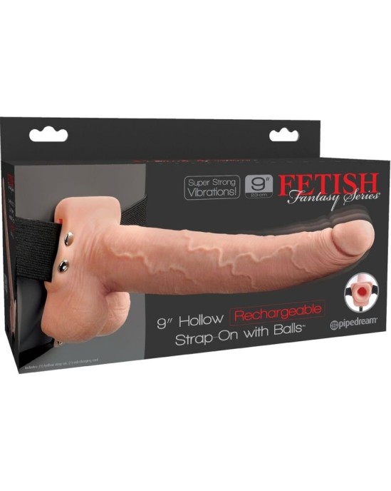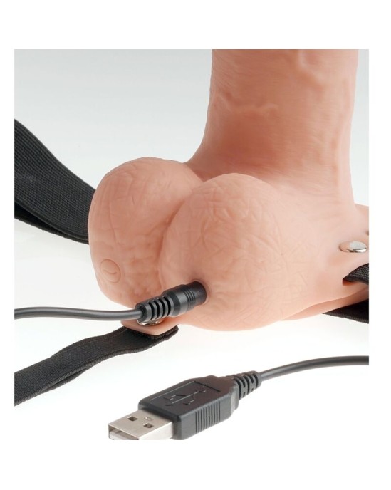 Have you always wanted to feel more confident about your size and enjoy satisfying sex with your partner long enough for you both to reach orgasm? Your lover knows that size matters, and nothing can fulfill your fantasies and please a partner like a confident man. the same one who knows what is doing! Now you can have the length and girth youve always dreamed of and be all the man you can be with the Fetish Fantasy Series Rechargeable Hollow Harness with Balls. Say goodbye to embarrassing disappointments halfway and greet a satisfying smile from your lover! The comfortable elastic harness easily adjusts to fit most sizes, while the realistic dildo hits the right place every time. Its perfect for men with erectile dysfunction, premature ejaculation problems, or couples looking to add a little style to their fun. Best of all, you can still enjoy hot face-to-face sex and make sure you both cum together! The rechargeable hollow harness is ready to use when you You are and youll never have to worry about changing batteries again. Press and hold the button on the left testicle for three seconds to turn it on, then press the button again to cycle through ten exciting pulsation patterns. Powered by a long-lasting lithium-ion battery, the super-powerful Japanese motor delivers exciting multi-speed vibrations to the tip of the dildo, precisely where your partner most ;s you want them. The dildo is body safe, latex-free, and compatible with water- and silicone-based lubricants. Cleanup is a breeze after the fun with the dildo cleaner. Pipedream toys and warm water. The included USB charging cable works with most USB power sources.