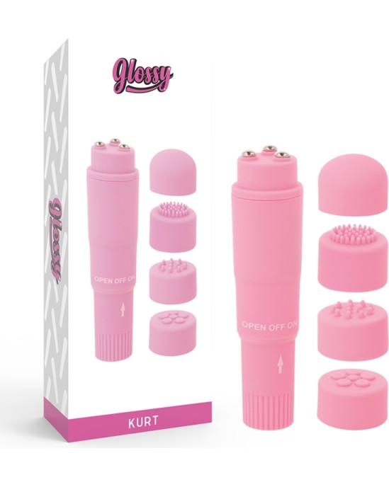 Glossy Vibrators ar maināmiem uzgaļiem rozā